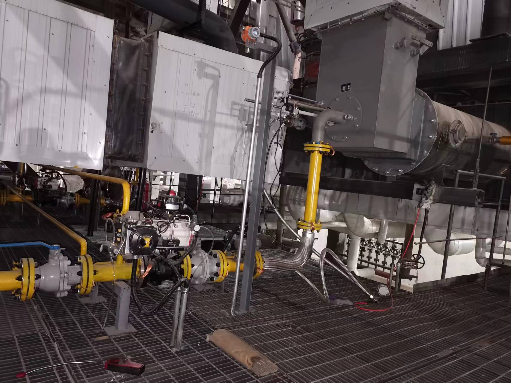 每臺鍋爐配兩臺氣燃燒器,床下布置,為了減少改造工作量,改造后的配合尺寸盡量與之前的保持一致;每臺燃燒器配一臺就地控制柜,用于轉接部分就地設備的控制接線,同時可以與DCS通訊;燃料閥組包含快關閥、調(diào)節(jié)閥、流量計、過濾器等設備,用于調(diào)節(jié)、控制燃燒狀況。