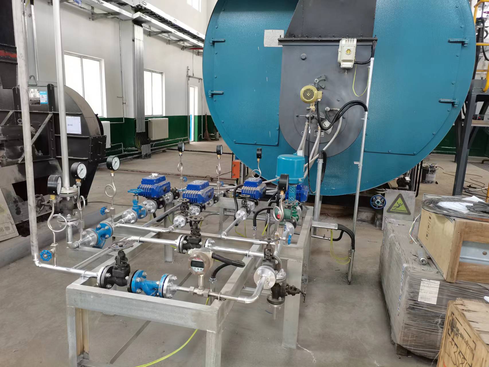 鍋爐為臥式內(nèi)燃、三回程濕背式結(jié)構(gòu),燃料為甲醇。常規(guī)一體機沒有適用這么大負荷鍋爐的成品,我公司定制設計滿足此鍋爐的甲醇燃燒器。