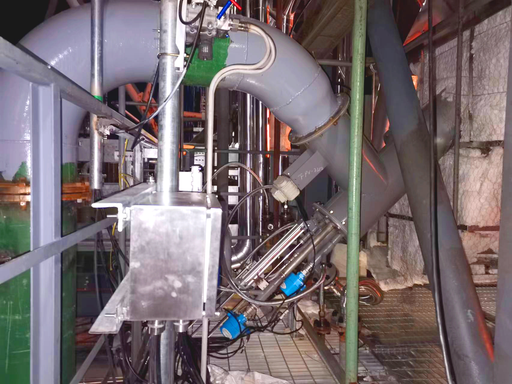現(xiàn)場煙氣溫度僅有60℃,需要將煙氣溫度升溫至240~260℃。為了減少改造量,采取直燃式燃燒器,即在煙道上開孔安裝1臺燃用天然氣燃燒器。根據(jù)使用方提供的煙氣分析數(shù)據(jù)和燃料氣分析資料,計算確定煙道截面、煙道出口煙氣溫度和燃燒器布置。采用的設(shè)計方案和設(shè)計數(shù)據(jù)必須確保燃燒完全,爐內(nèi)溫度場均勻。燃燒器設(shè)計應(yīng)能抑制NOx和CO的生成。煙道燃燒器設(shè)計應(yīng)能保證煙氣混合均勻,出口煙氣溫度保持穩(wěn)定,并保證煙道燃燒器長期穩(wěn)定運(yùn)行。