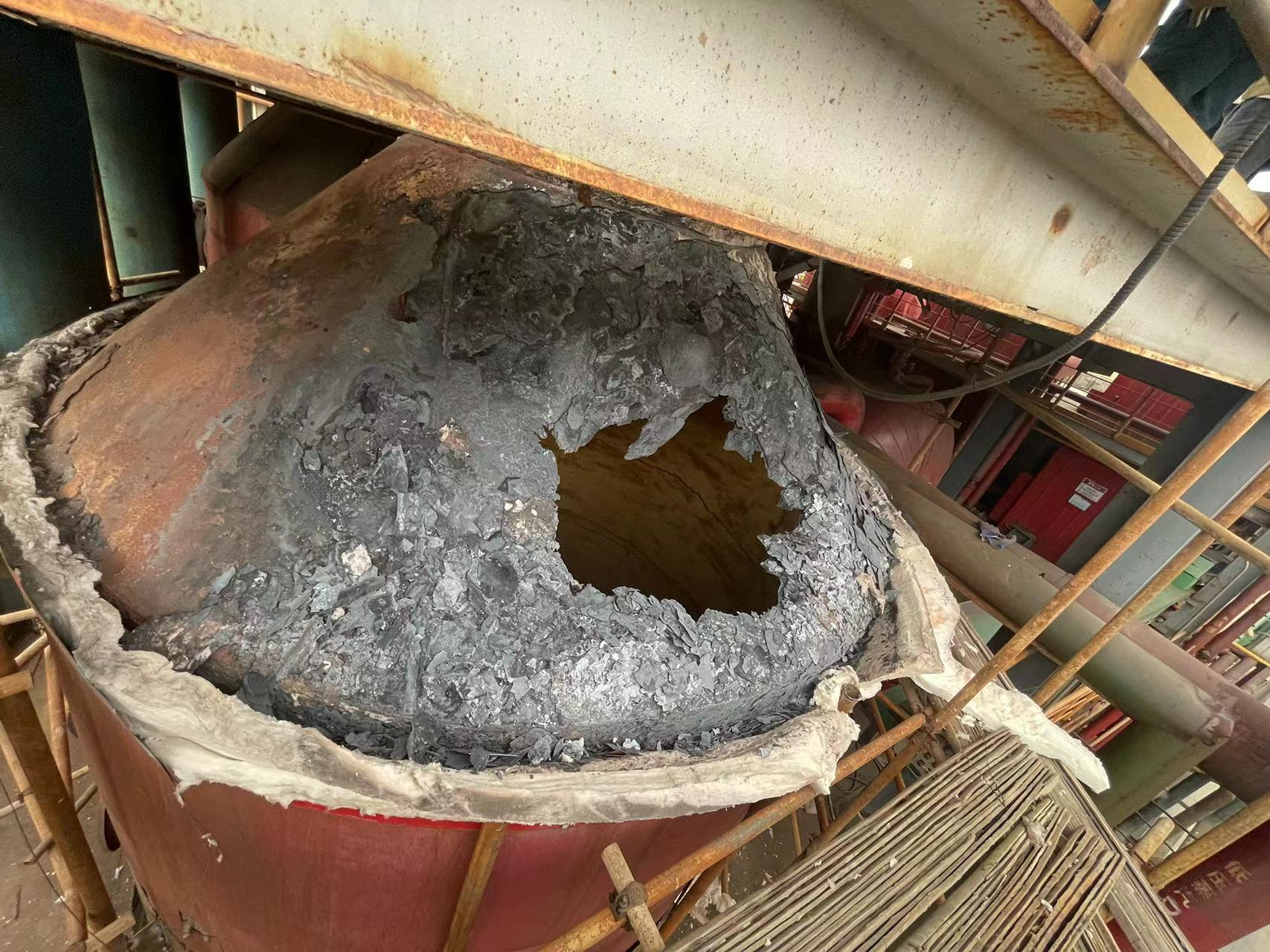 河南某公司氯化法車間有焚燒爐3臺(tái),燃燒器頂置,使用過程中燃燒器時(shí)常燒壞,焚燒爐頂部燒穿,現(xiàn)決定對3臺(tái)焚燒爐、燃燒器進(jìn)行改造。